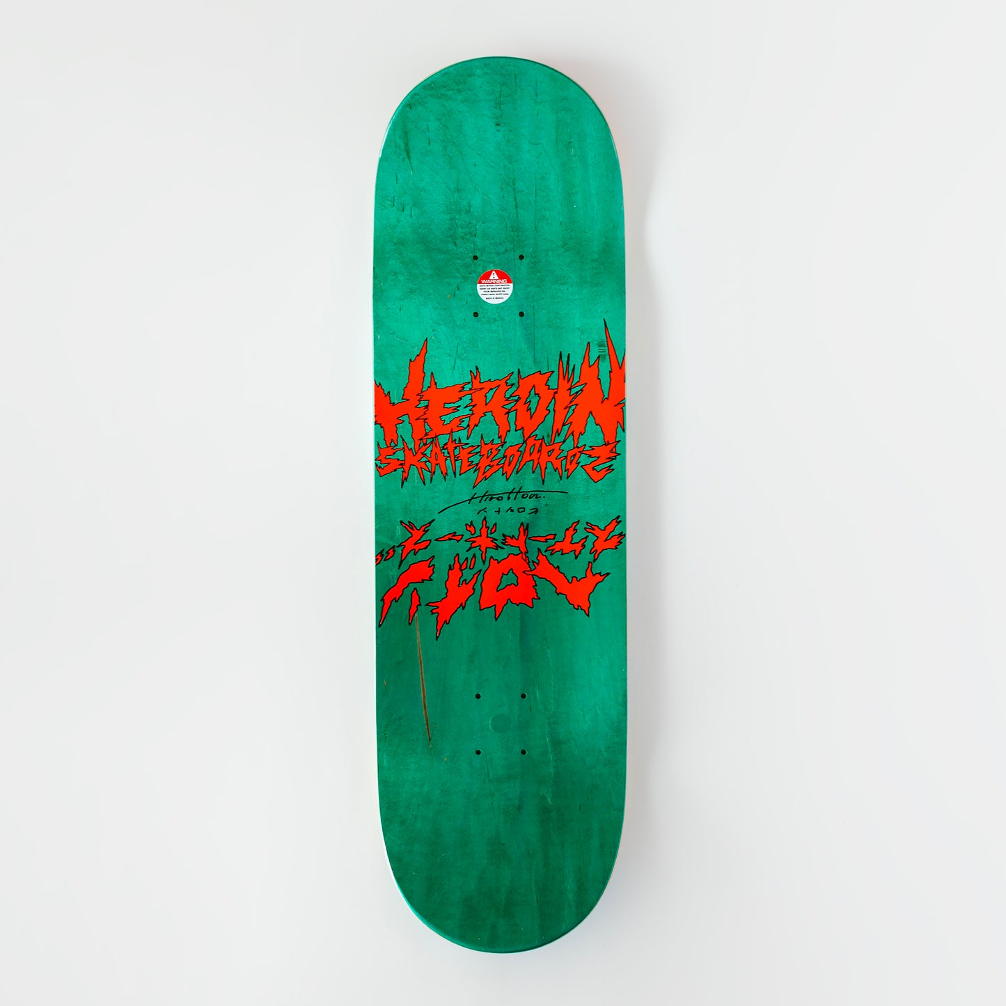 The Craig Scott Questions Dead Reflections Deck by Heroin Skateboards is one of a series of decks which are designed by Hirotton and also comes with the Razortop construction and a symmetrical shape.
